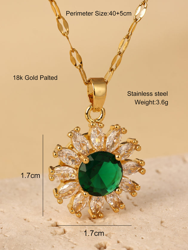 Emerald Sunflower Necklace, Women's Light Luxury Style, High Grade, Collar Chain, Fashion Neckchain