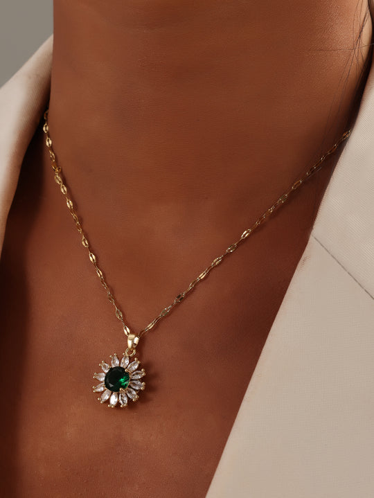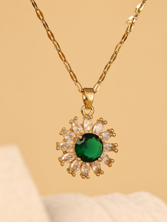 Emerald Sunflower Necklace, Women's Light Luxury Style, High Grade, Collar Chain, Fashion Neckchain