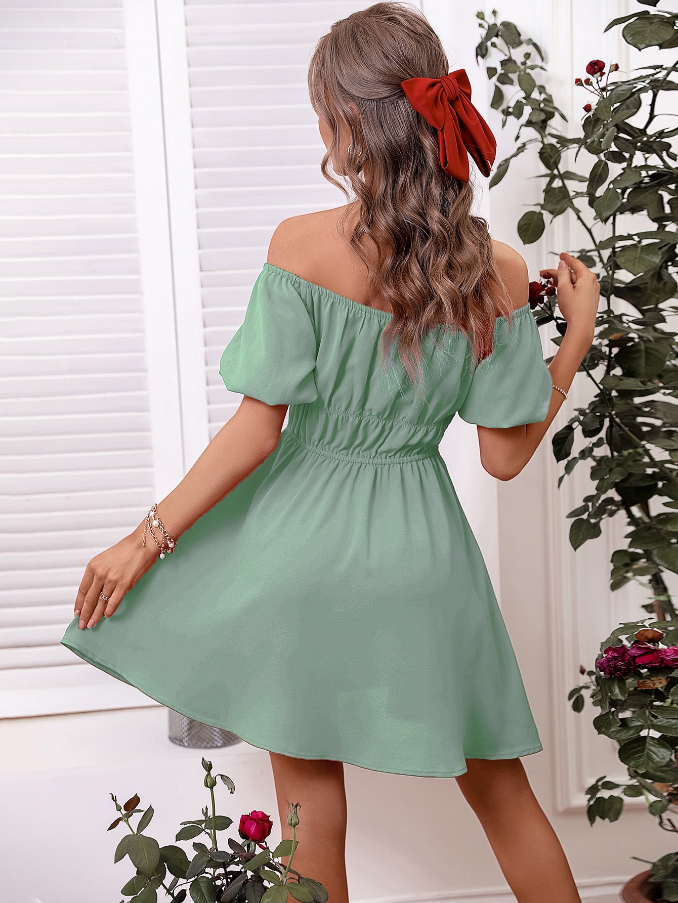 Solid Color High Waist Tube Top Dress Off-shoulder Shoulder-baring Simple Skirt