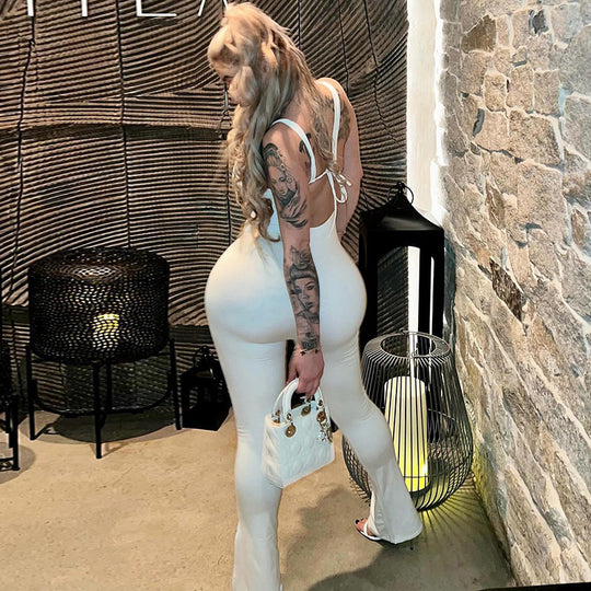 European And American Fashion Women's Wear Solid Color Off-neck Strap Backless Tight Sexy Minimalist Jumpsuit