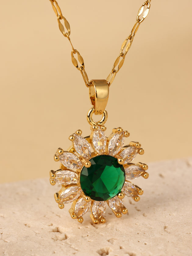 Emerald Sunflower Necklace, Women's Light Luxury Style, High Grade, Collar Chain, Fashion Neckchain